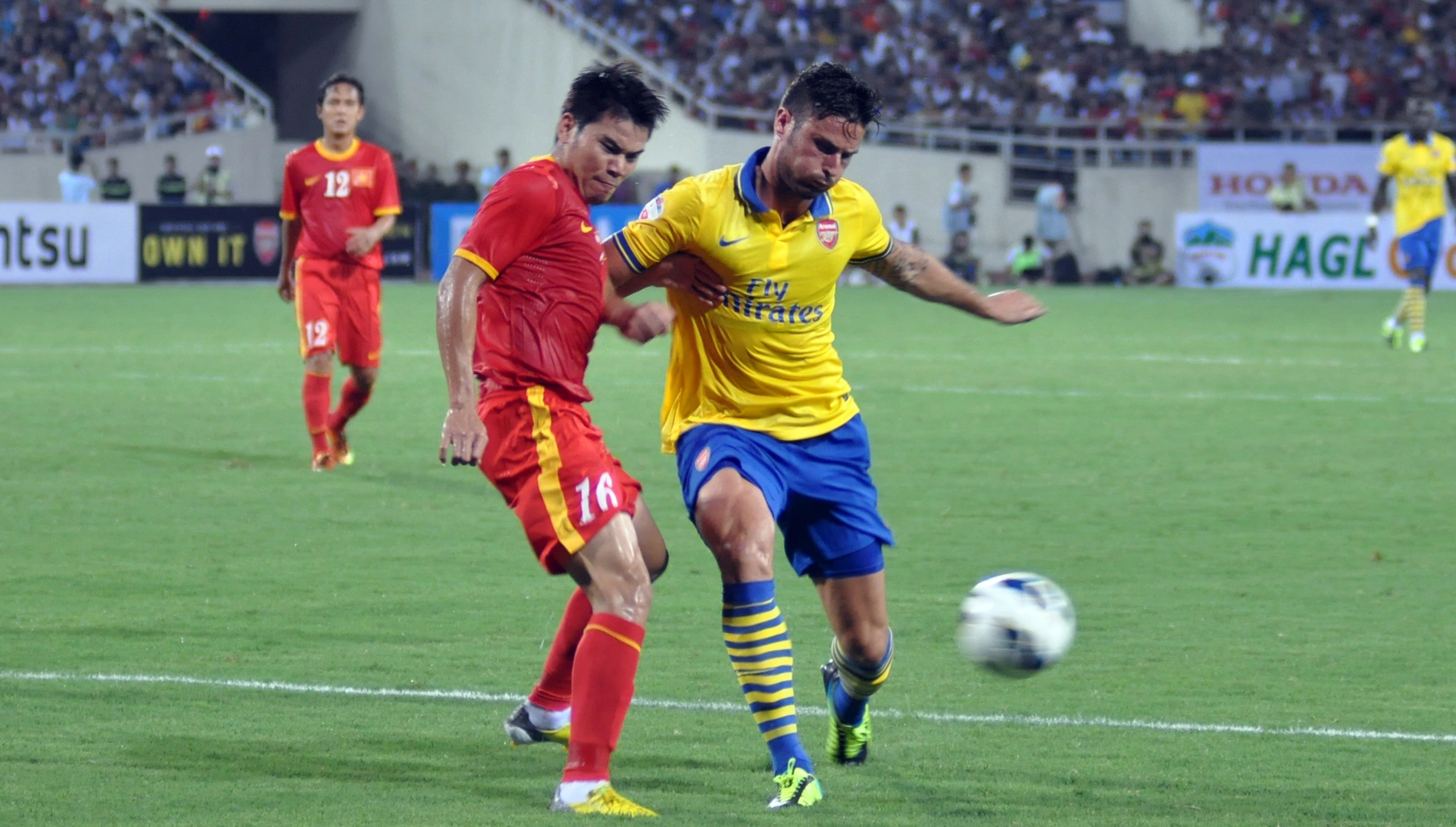 Một người phải đặc biệt chú ý đến những tin đồn chuyển nhượng lúc ấy là Giroud. Wenger quả quyết việc CLB theo đuổi một tiền đạo không hoàn toàn liên quan đến màn trình diễn của cựu cầu thủ Montpellier, nhưng sự xuất hiện của Suarez hay Higuain, nếu thành hiện thực, sẽ khiến Giroud mất suất tiền đạo mũi nhọn. Tuy nhiên, thay vì ủ rũ, cầu thủ người Pháp đã nỗ lực gấp đôi trong việc tập luyện. Một mặt đó là ảnh hưởng bởi những tin đồn về Higuain hoặc Suarez, mặt khác thực tế là anh ấy đã thích nghi với Arsenal và bóng đá Anh. Nhưng dù đó là gì, Arsenal vẫn chứng kiến một Giroud sắc bén hơn, quyết tâm hơn gấp bội trong giai đoạn trước mùa giải.