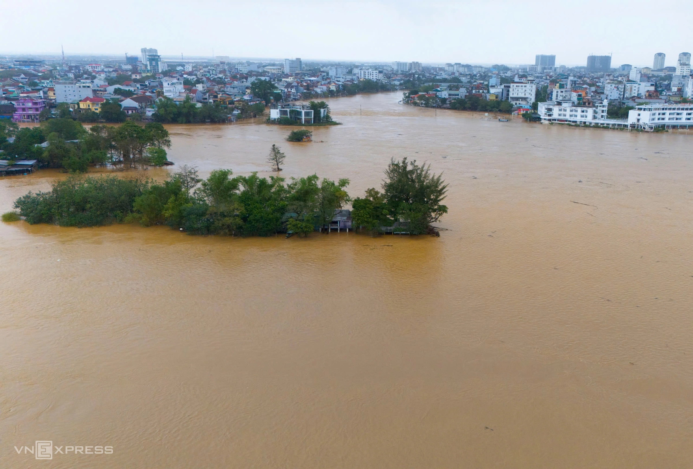 Đường Bạch Đằng ven sông ngập hơn nửa mét, nhiều xe được đưa lên cầu Đông Ba để tránh. Cách đó 6 km, khu vực lăng Vạn Vạn – nơi an nghỉ của Hựu Thiên Thuận Hoàng Hậu Dương Thị Thục, vợ vua Đồng Khánh, ở phường An Cựu – cũng bị nước lũ bao vây. Nhiều đường và nhà dân ở phường An Cựu, An Vân Dương và Vỹ Dạ chìm trong nước.