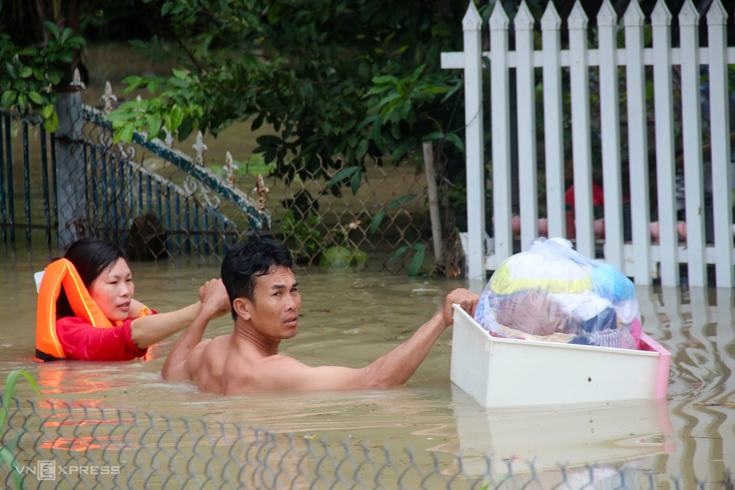 Tại Hội An, TP Đà Nẵng chiều 17/11, nước lũ đã bủa vây những khu nhà cổ ven sông Hoài. Trên đường Bạch Đằng và Tôn Nữ Ngọc Hoa, nước ngập khoảng một mét, trong khi những tuyến đường phía trong như Nguyễn Thị Minh Khai, Nguyễn Thái Học... ngập nửa mét. Người dân dùng thuyền sơ tán khỏi khu vực ngập sâu bên kia sông về Chùa Cầu.