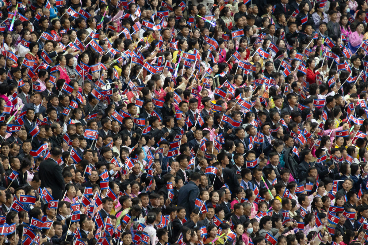 Rất đông người dân Triều Tiên mang theo quốc kỳ dự lễ kỷ niệm, reo hò cổ vũ nhiệt tình trên khán đài. Hãng thông tấn trung ương Triều Tiên KCNA mô tả những âm thanh này đã "làm rung chuyển bầu trời đêm của thủ đô".