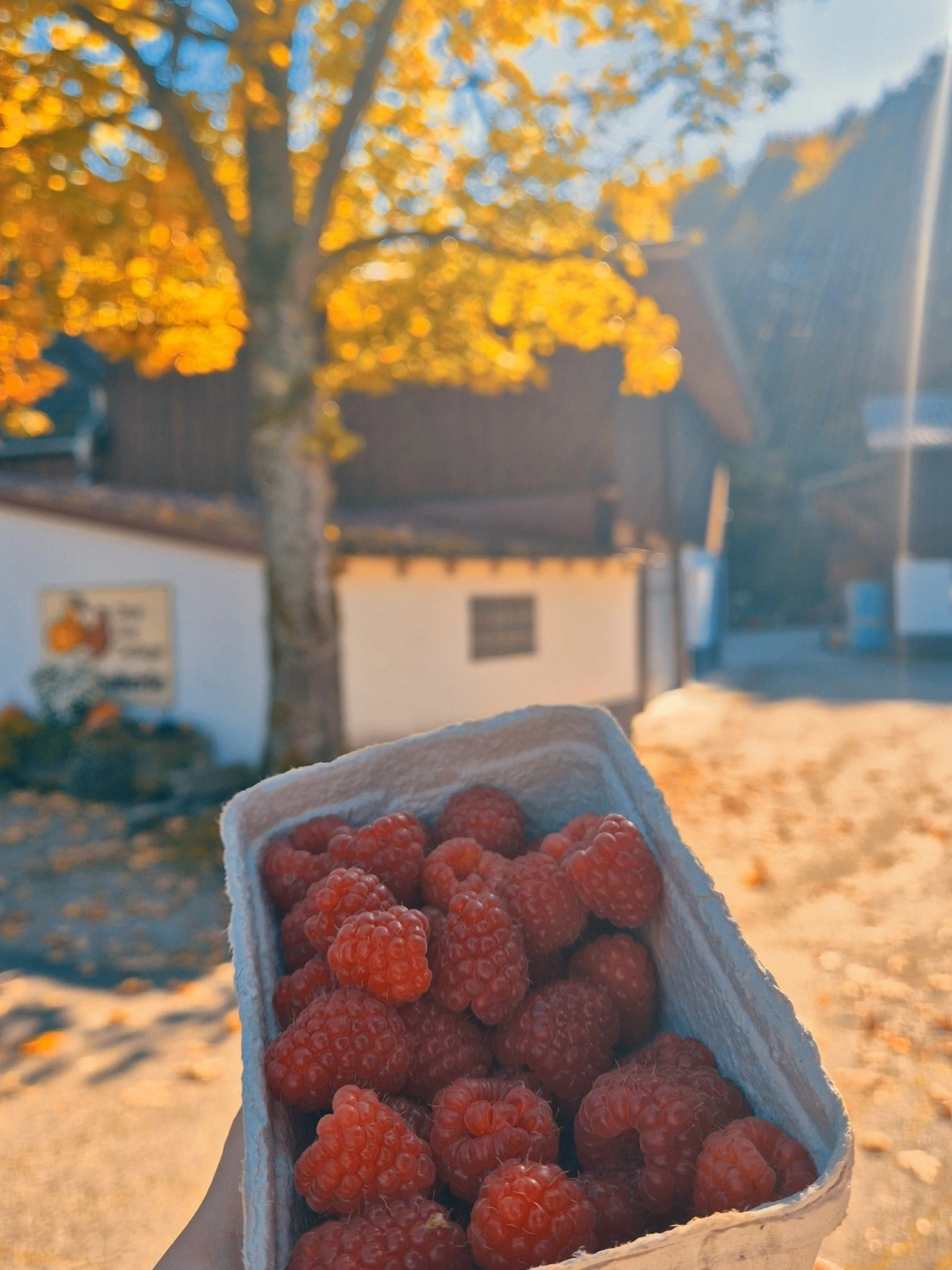 Mùa thu cũng là mùa thu hoạch các loại quả mọng ở Đức. Trên ảnh là hộp mâm xôi đỏ được Toni mua tại cửa hàng địa phương.