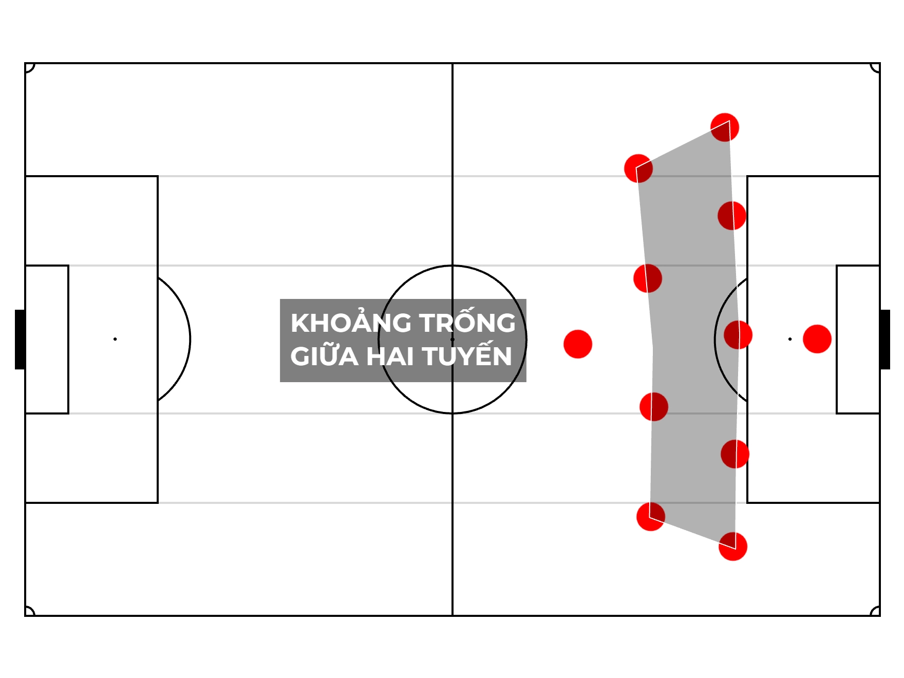 Bảo vệ khoảng trống giữa tuyến thủ và tuyến tiền vệ (tức "gap") trong cấu trúc phòng ngự sẽ ngăn cản đối phương tấn công xuyên thủng khối phòng ngự.