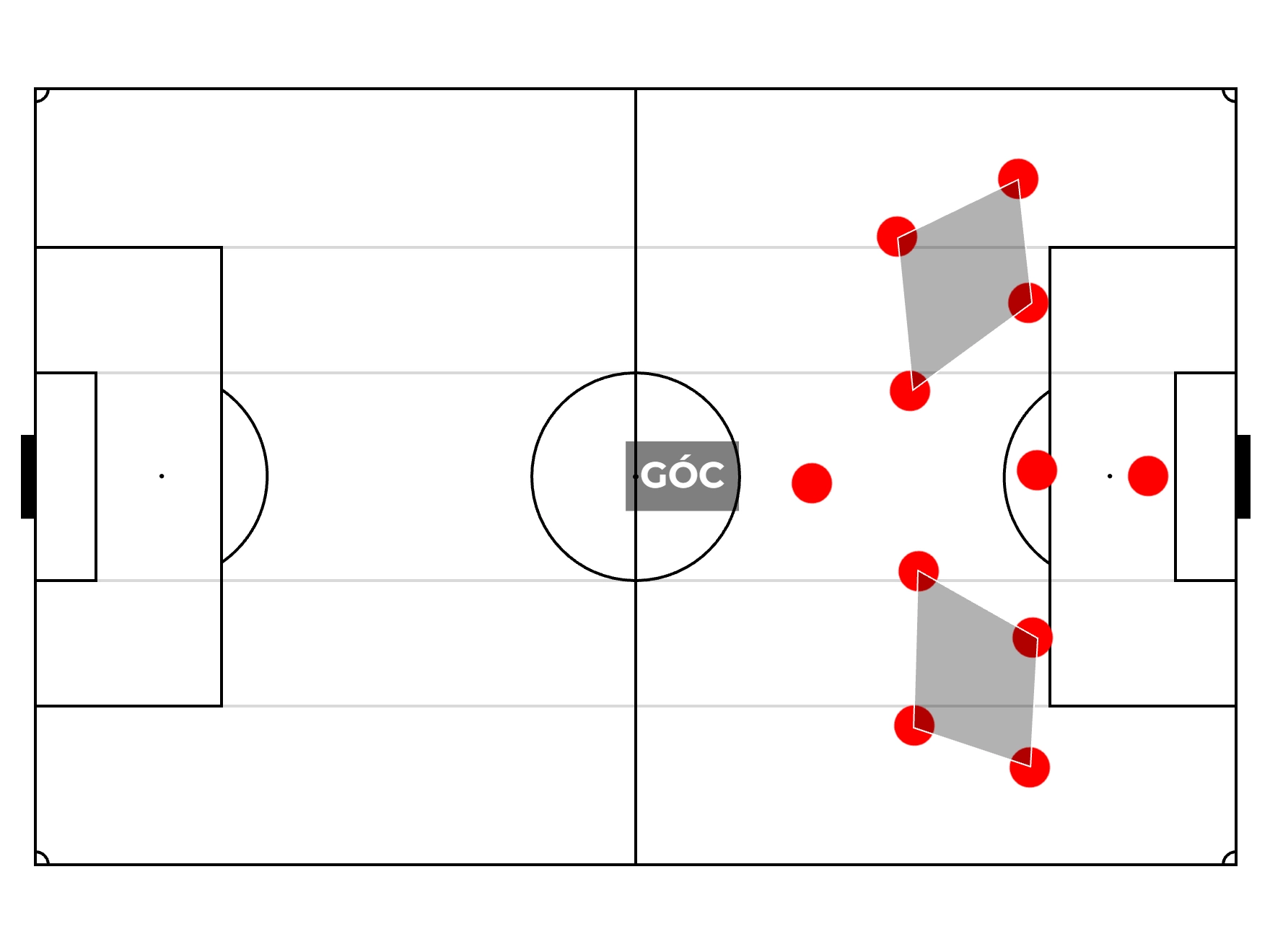 Các góc trong khối phòng ngự luôn có sự hỗ trợ và bọc lót dành cho các hậu vệ cánh từ các tiền vệ cánh và tiền vệ trung tâm.
