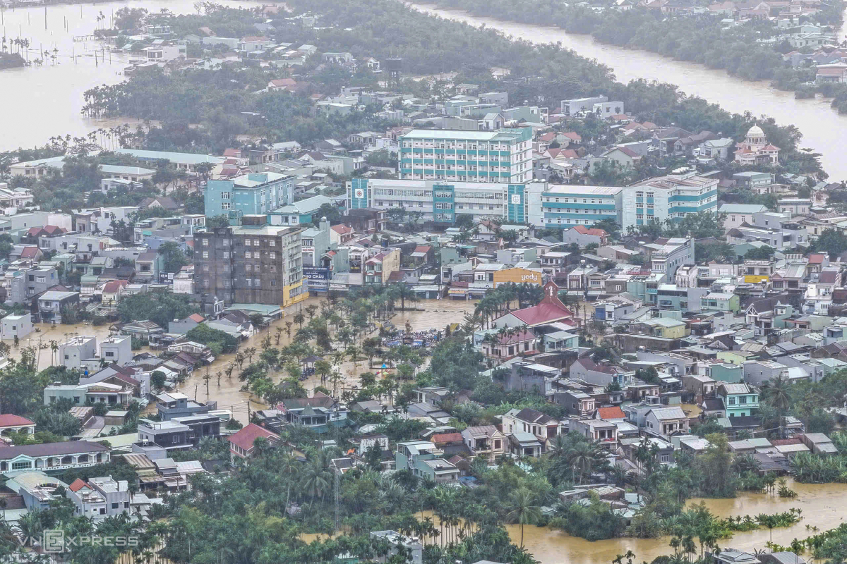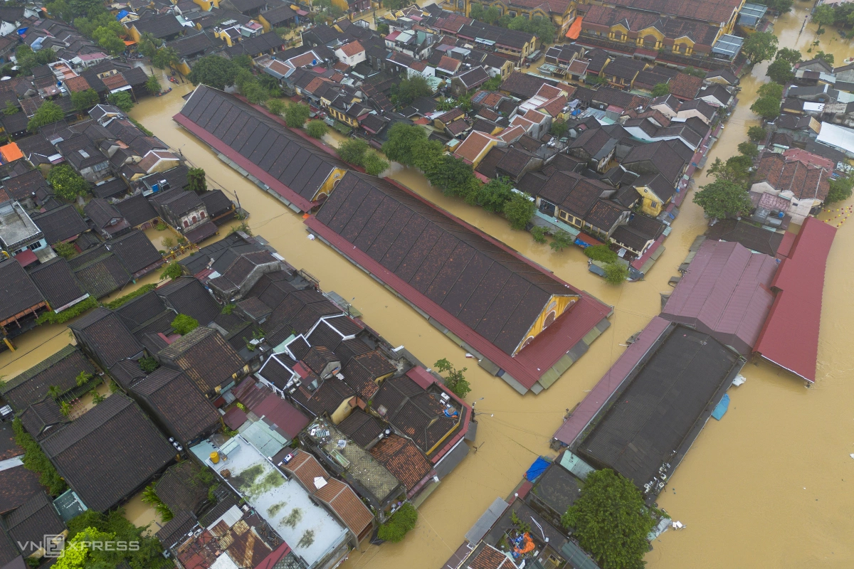 Ngày 29/10, Đà Nẵng mưa xối xả, thủy điện thượng nguồn tiếp tục xả với lưu lượng 1.300-3.000 m3/s, bằng với lưu lượng nước về hồ khiến lũ vùng hạ du sông Vu Gia - Thu Bồn tiếp tục lên. Phố cổ Hội An ven sông Hoài ngập hơn 2 m, nhỉnh hơn hôm qua khoảng 0,2-0,3 m.