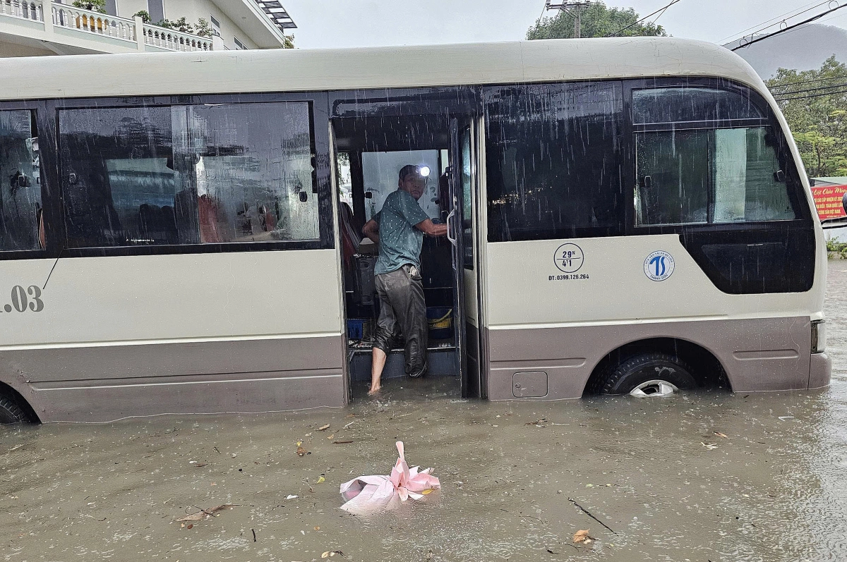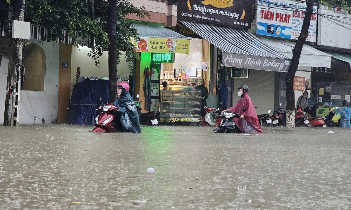 Khu vực Nha Trang, Khánh Hòa, chịu ảnh hưởng nặng nhất trong trận mưa sáng nay. Nước trút xuống hơn 3 giờ khiến tuyến đường 2 Tháng 4 ngập gần nửa mét lúc hơn 9h.