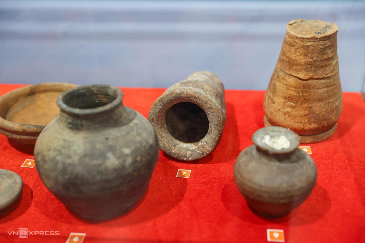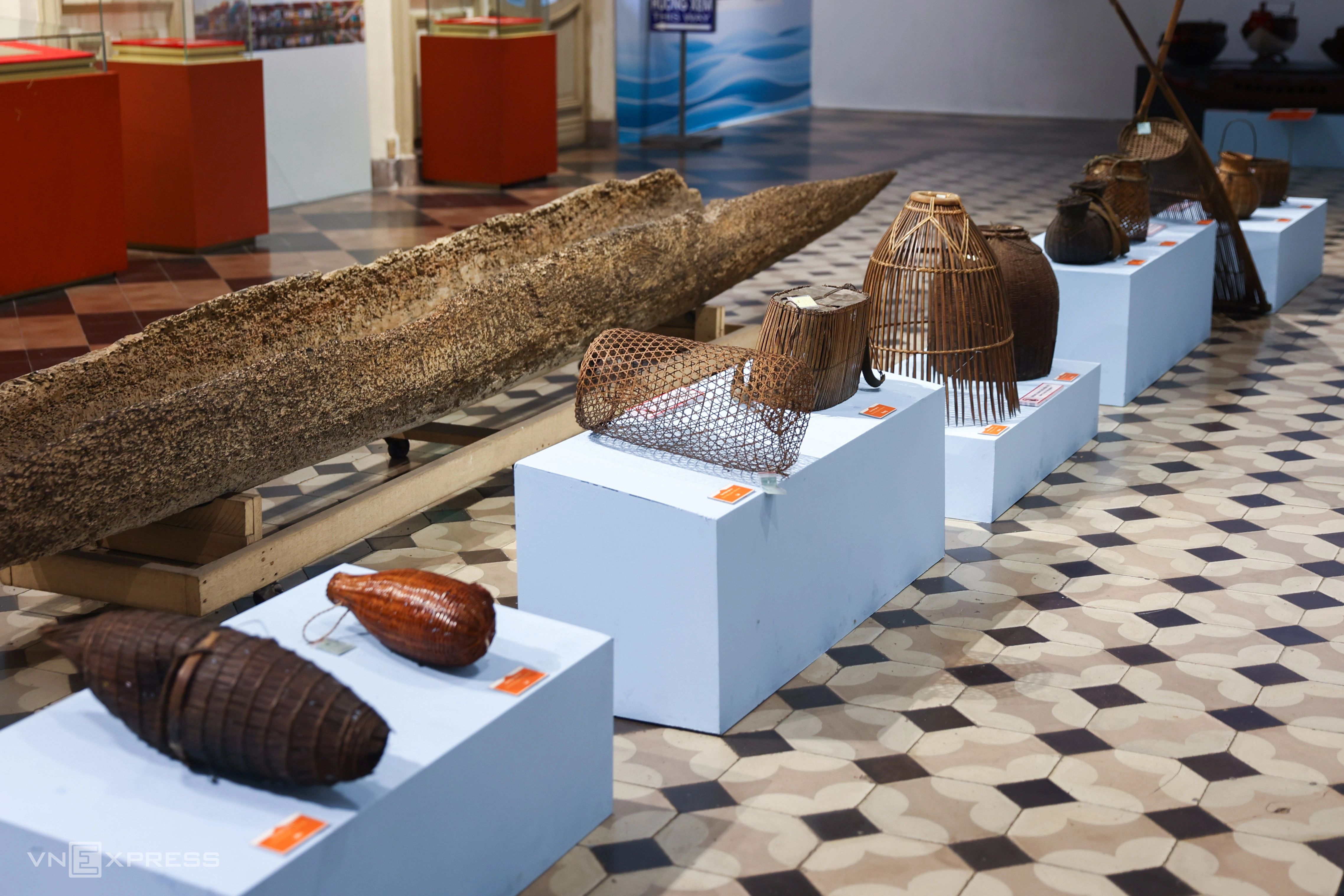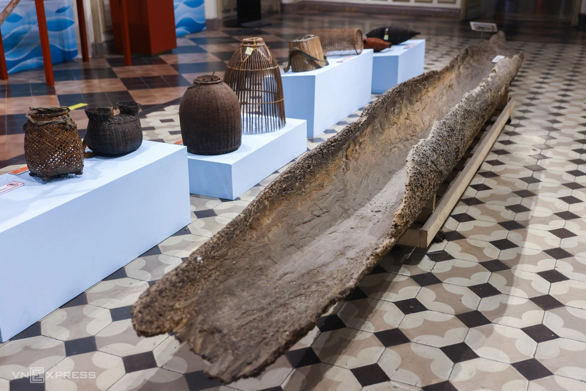 Thuyền độc mộc thế kỷ 13 và nhiều cổ vật gốm sứ trục vớt ở sông Sài Gòn được trưng bày trong triển lãm tại bảo tàng TP HCM.