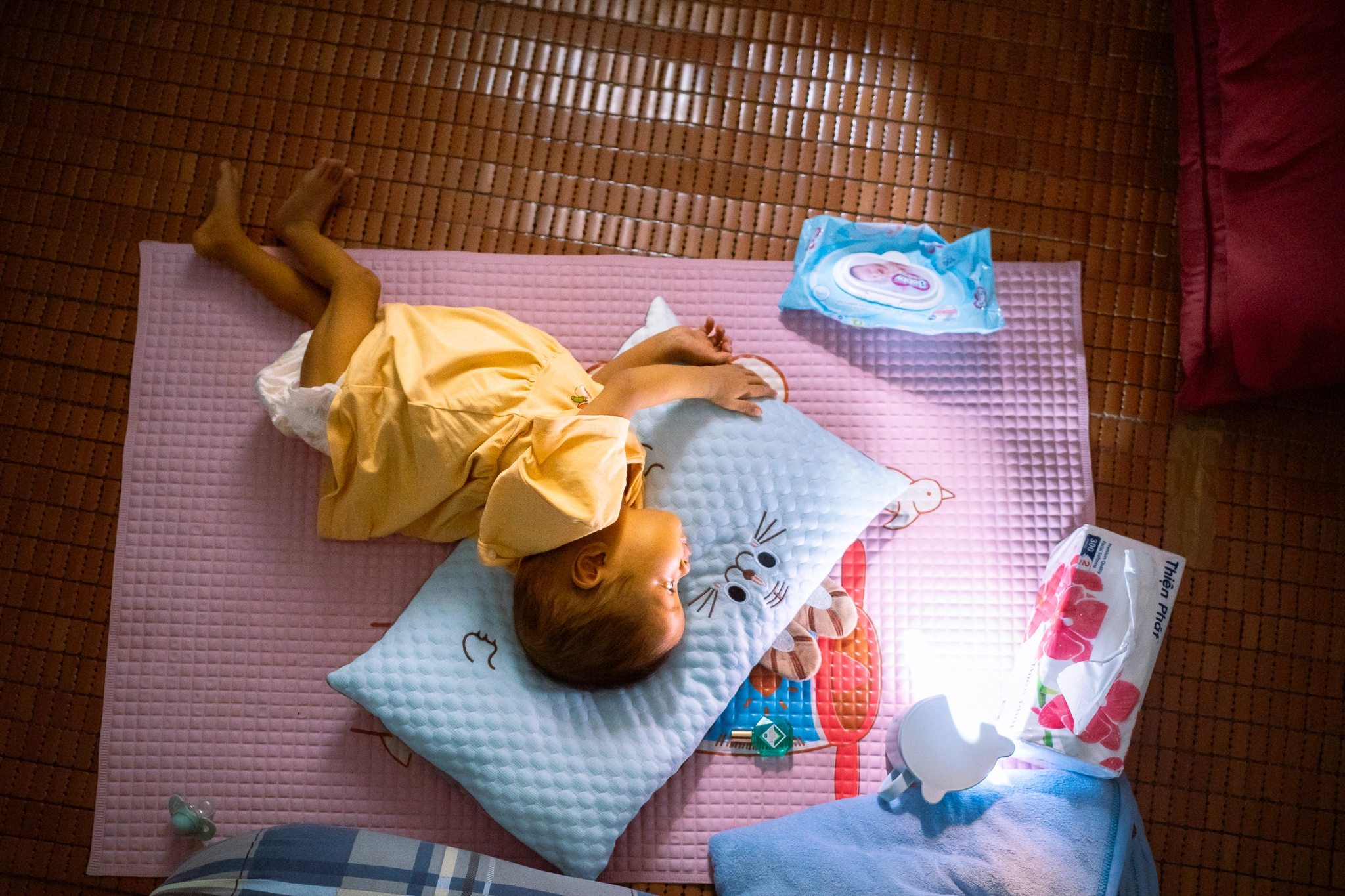 Bên kia đầu dây, chị Võ Thị Mỹ (32 tuổi, Quảng Ngãi) bật dậy, thì thầm hỏi lại: "Lần này thiệt không bác sĩ?". Kế bên chị, con gái Nguyễn Tường Vy (2 tuổi) vẫn đang say giấc.
