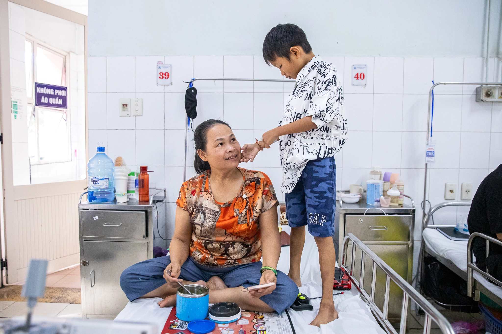 "Sao Hiếu cứ phải đi viện hoài vậy mẹ?", chị Hương nhắc về câu hỏi thường trực của con. Người mẹ không lý giải chi tiết cho con về mức độ nghiêm trọng của bệnh tình, sợ con hoảng sợ sẽ không tốt cho việc điều trị.