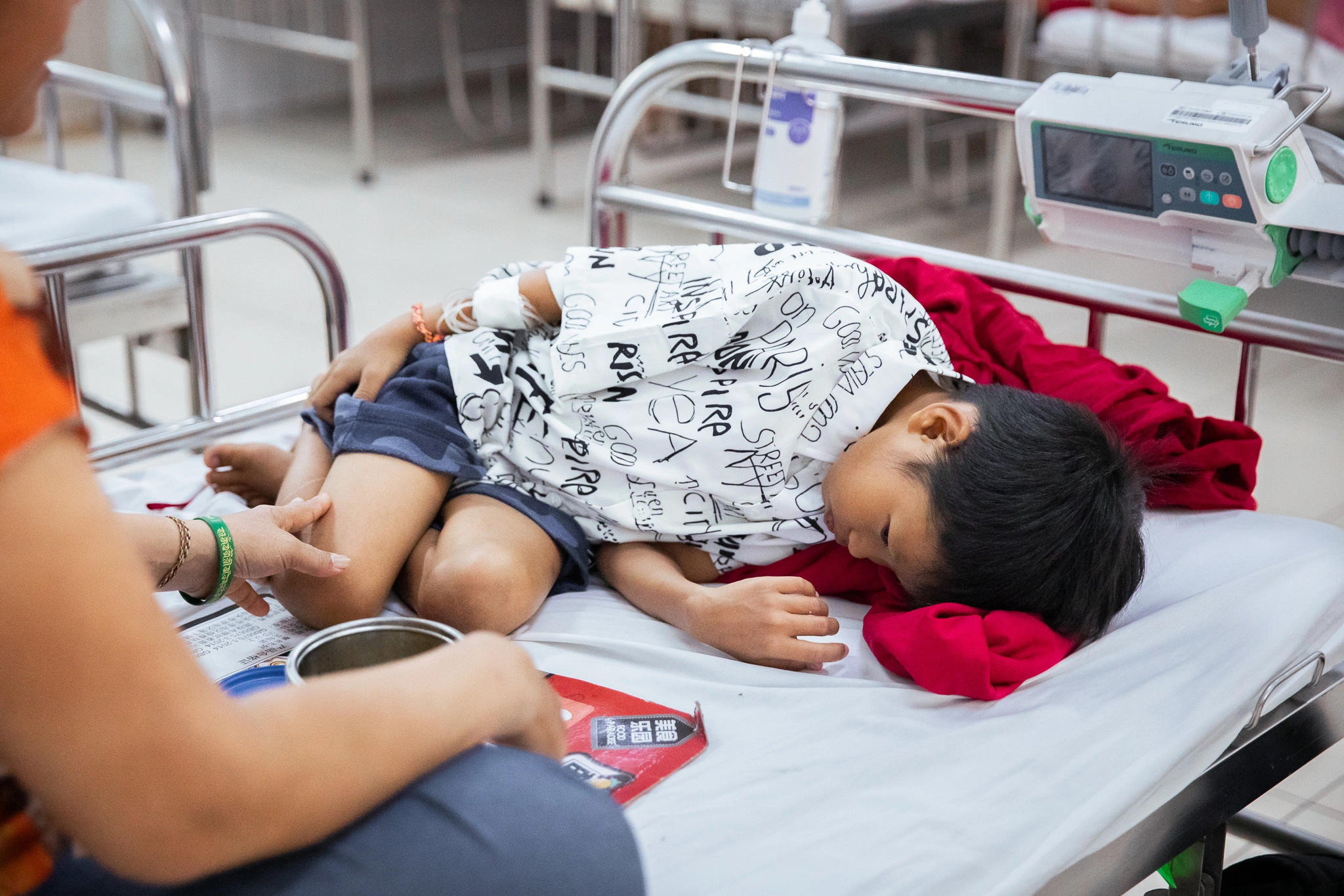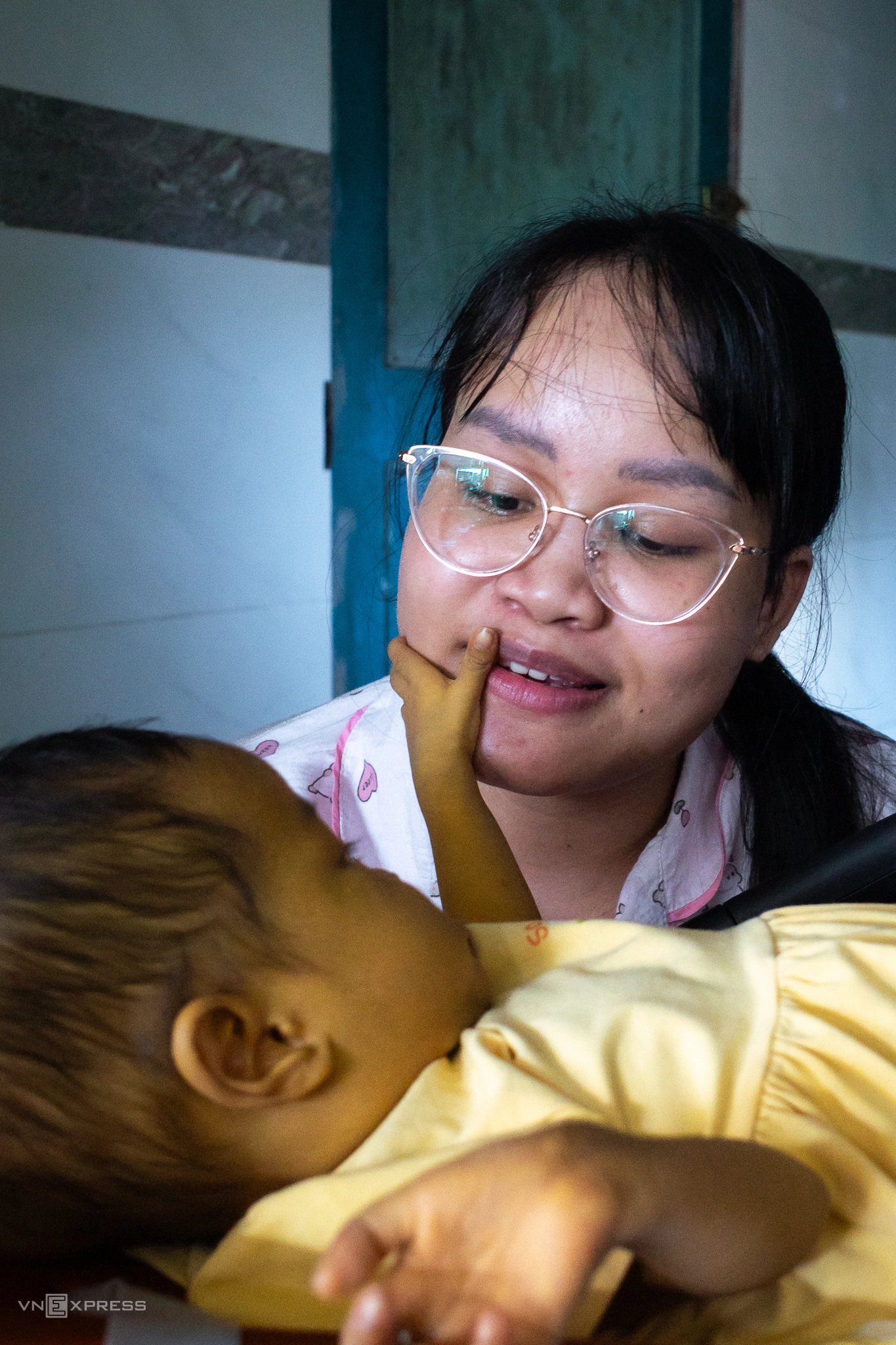Cuối tháng 10, chị Hồ Thị Giang đưa Ngọc Châu vào bệnh viện tái khám khi bụng con lại chướng to, chị sợ con khó thở. Người mẹ không muốn chờ thêm. Mỗi ngày nhìn con mắc kẹt giữa những sợi dây truyền, với chị như một hình phạt lặp lại - vừa vì thương con, vừa vì nỗi lo tiền viện phí cứ dày lên theo từng lần nhập viện.