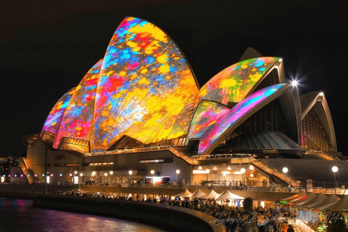 Sydney đón mùa đông bằng lễ hội ánh sáng, âm nhạc và ý tưởng kéo dài 23 ngày. Thành phố chìm trong không gian trình chiếu ngoạn mục, đặc biệt là những hình ảnh 3D trên Nhà hát Con Sò - biểu tượng của Australia. Những cánh buồm của công trình huyền thoại trở thành màn vải sống động cho các tác phẩm nghệ thuật, từ họa tiết thổ dân đến hình ảnh thiên nhiên rực rỡ. Ảnh: Boredpanda