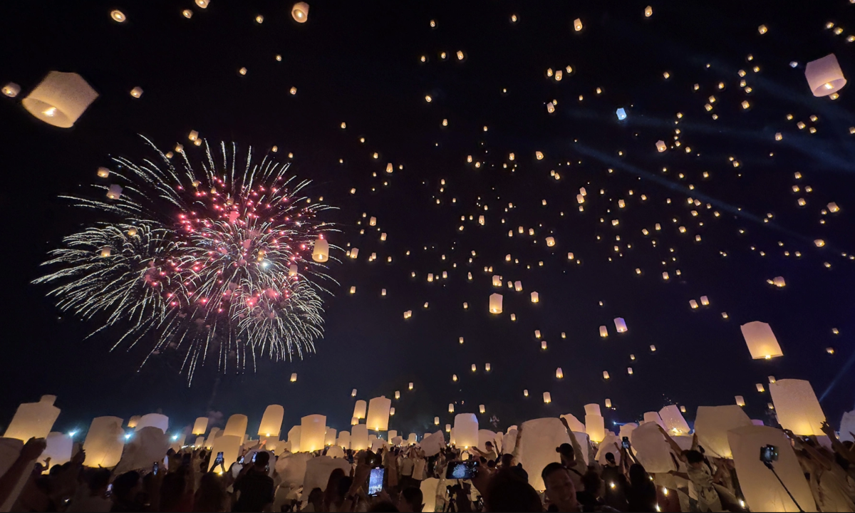 Loy Krathong (hoa đăng) là lễ hội lớn tại Thái Lan thường diễn ra vào tháng 11. Đây là dịp người Thái bày tỏ lòng biết ơn Nữ thần Nước. Hàng nghìn giỏ hoa hình búp sen, làm từ gáo dừa, được thả trôi trên sông với nến lung linh, tượng trưng cho việc buông bỏ điều xui xẻo và cầu chúc may mắn. Không khí lễ hội còn sôi động với múa truyền thống và âm nhạc dân gian. Loy Krathong thường được tổ chức ở nhiều nơi gồm Bangkok, Pattaya, Phuket và Chiang Mai. Ảnh: Trường Phạm