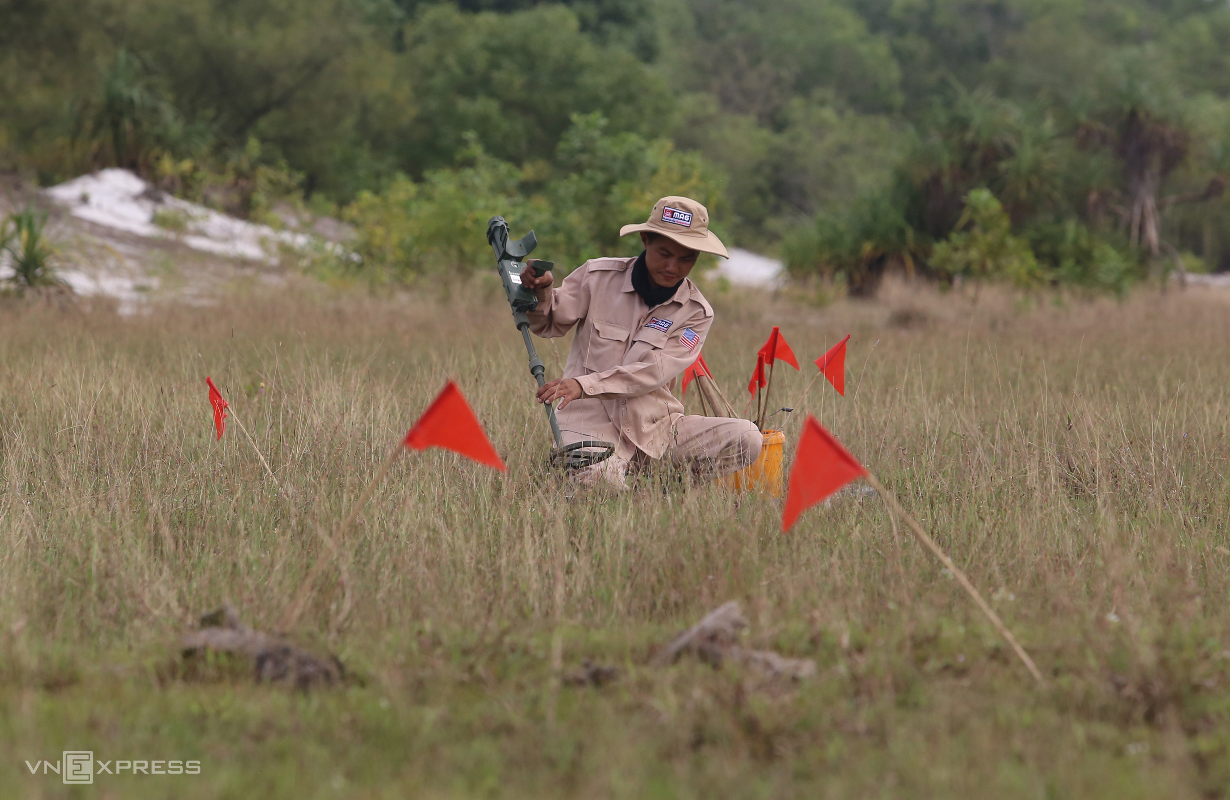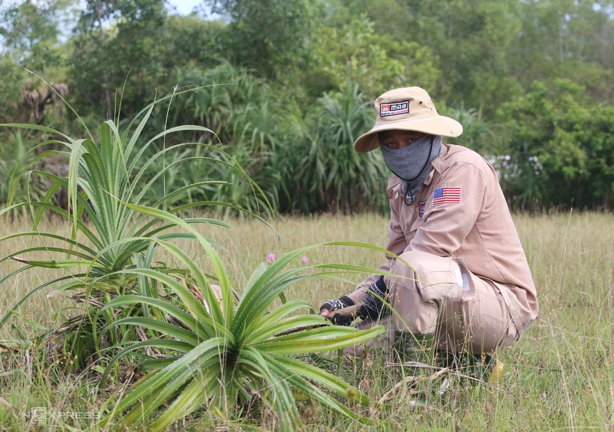 Khu vực rà phá có nhiều cây dứa, nhân viên phát dọn để máy rà không sót một chỗ nào. Sau 22 ngày hoạt động, đội MAT99 đã xử lý được 45.100 m2, phát hiện 3 quả bom chùm và 5 vật liệu khác.