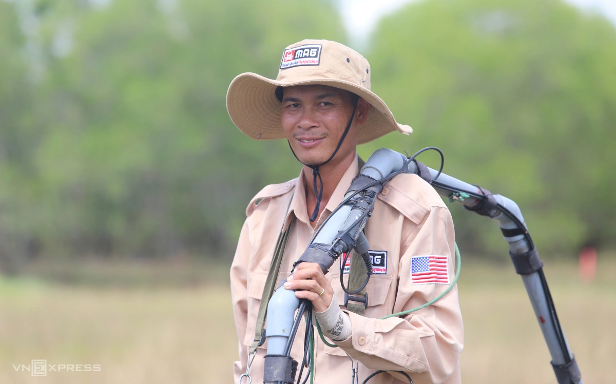 Cách đội MAT99 gần một km về hướng bắc, anh Hồ Văn Chiến, đội MAT29 mang máy dò ra hiện trường bắt đầu công việc ở thôn Đồng Tâm, làm nhiệm vụ rà phá bom chùm trên diện tích 765.827 m2.