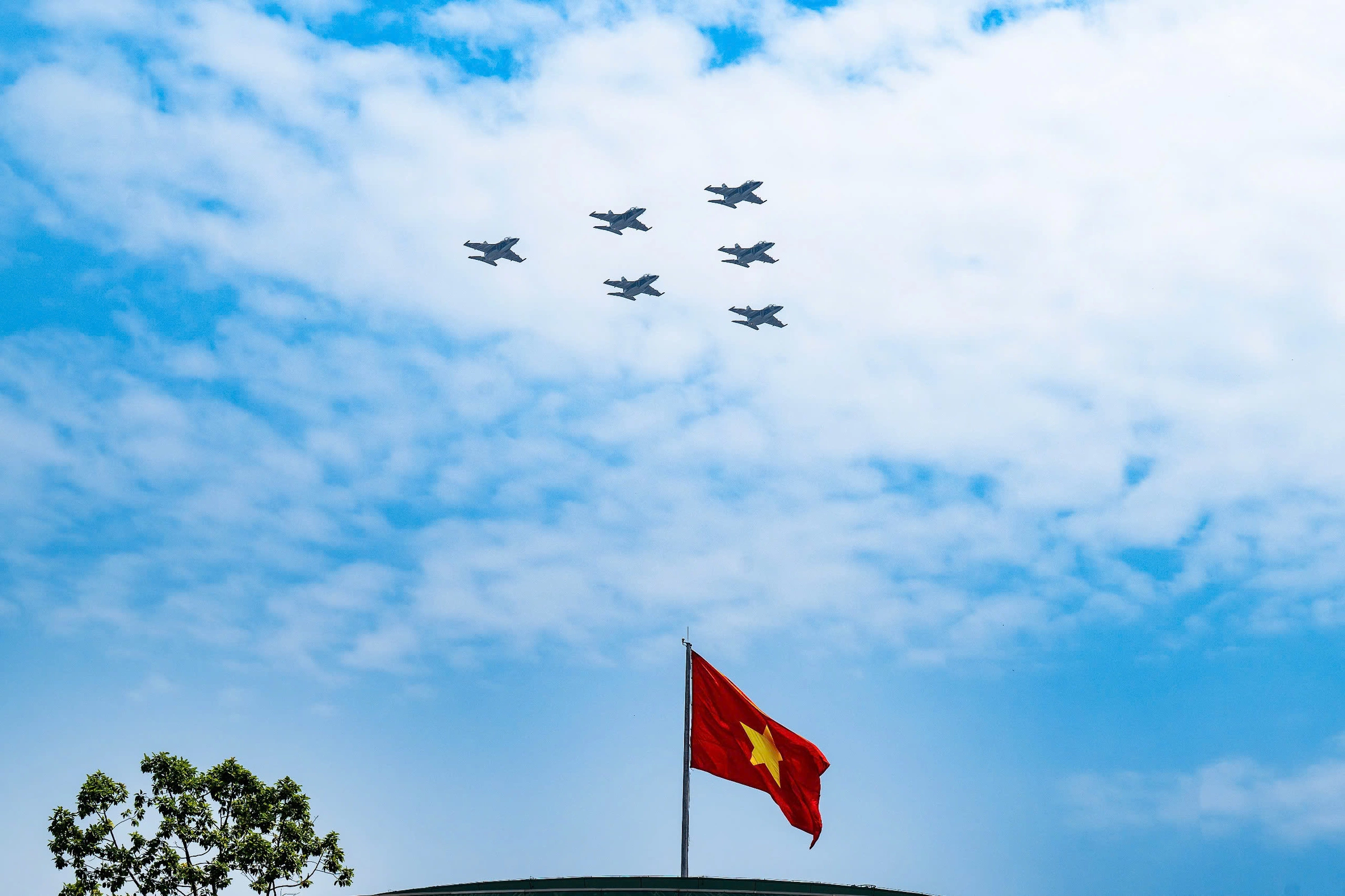 Đội hình sẽ bay qua trước lễ đài, cùng hướng hành tiến của xe pháo quân sự và hơn 16.300 quân nhân, trên trục Hồ Tây - đường Thanh Niên. Sau màn mở đầu của trực thăng kéo cờ và vận tải cơ CASA, ba dòng máy bay phản lực nối tiếp, trình diễn những kỹ thuật cơ động phức tạp phục vụ người dân cả nước.