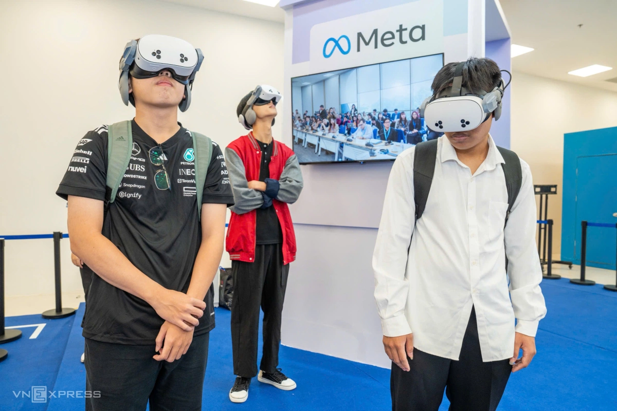 Gian hàng của Meta tại triển lãm. Tương tự năm trước, Meta trưng bày công nghệ thực tế ảo cùng thiết bị của hãng. Đây cũng là gian hàng thu hút nhiều người tham gia nhờ trải nghiệm độc đáo.