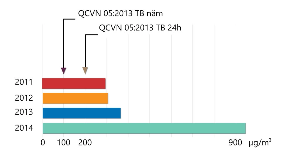 Trên thực tế, các chỉ số ô nhiễm không khí tại các làng nghề nhôm của Văn Môn đã đáng báo động từ lâu. Báo cáo môi trường quốc gia giai đoạn 2011-2015 cho biết, xét riêng chỉ số nồng độ tổng bụi lơ lửng (TSP), năm 2014 các làng nghề này đã vượt 5 lần quy chuẩn.