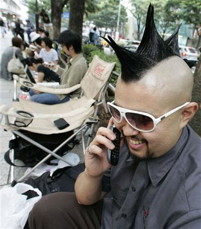 Koichi Funyu - một người dùng di động ở đất nước mặt trời mọc cũng có mặt trước cửa hàng của SoftBank. | |