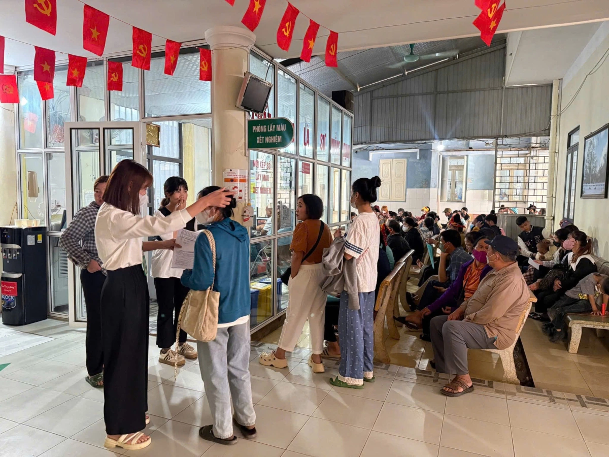 Ở khu vực xét nghiệm, nước rút khỏi từ chiều 8/10, bệnh viện huy động nhân viên y tế cùng lực lượng chức năng tập trung dọn dẹp vệ sinh suốt đêm qua. Đến sáng nay, khu khám và xét nghiệm hoạt động trở lại, nhiều bệnh nhân đến khám sau nhiều ngày bị nước cô lập. Ảnh: Thanh Vân