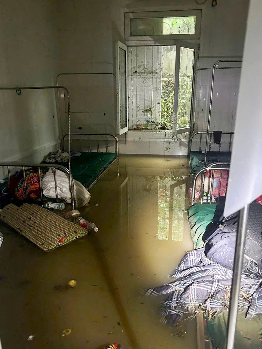 Bệnh viện Đa khoa khu vực Vân Hồ, tỉnh Sơn La, phòng bệnh ở tầng một vẫn còn ngập nặng, cuốn trôi đồ dùng, dụng cụ cá nhân của bệnh nhân. Những ngày qua bệnh nhân nơi đây đã được chuyển lên tầng trên tiếp tục điều trị.