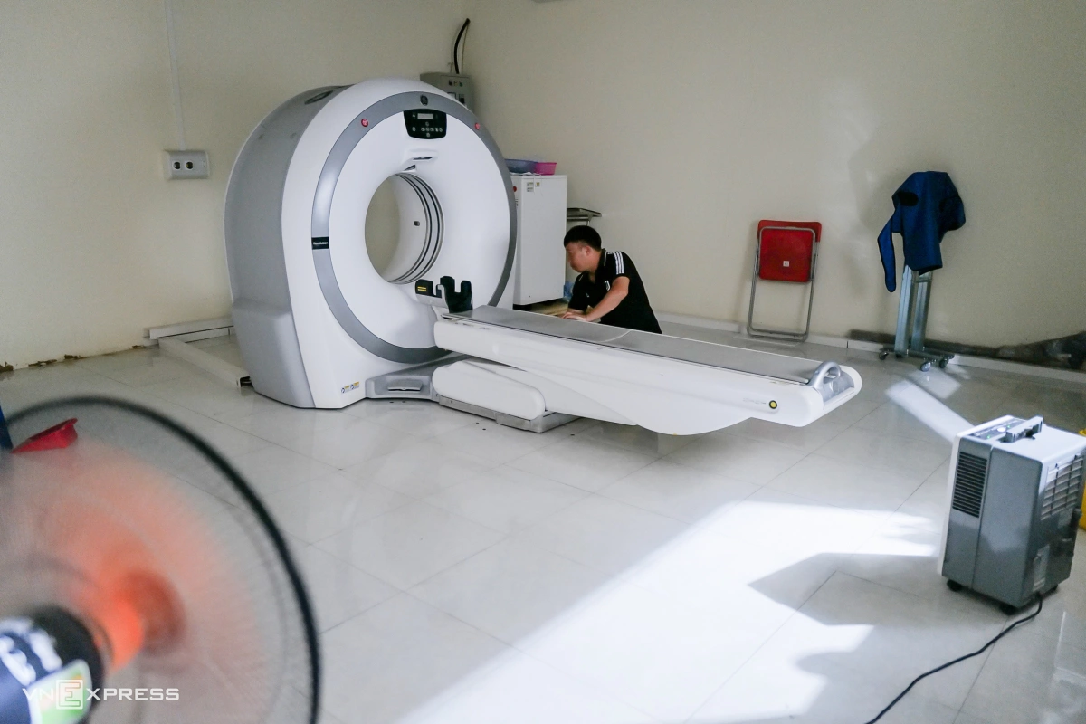 Nhiều trang thiết bị hư hại do nước ngập. Như máy chụp CT này trọng lượng rất nặng nên không thể di dời khi nước tràn vào. Đại diện bệnh viện cho hay những ngày qua cố gắng bọc máy ngăn nước và cố tát nước từ phòng đặt máy ra ngoài. Hiện phòng máy CT đã hết nước, tuy nhiên bệnh viện đang tập trung dọn dẹp nên chưa thử khởi động máy để đánh giá mức độ hỏng hóc.