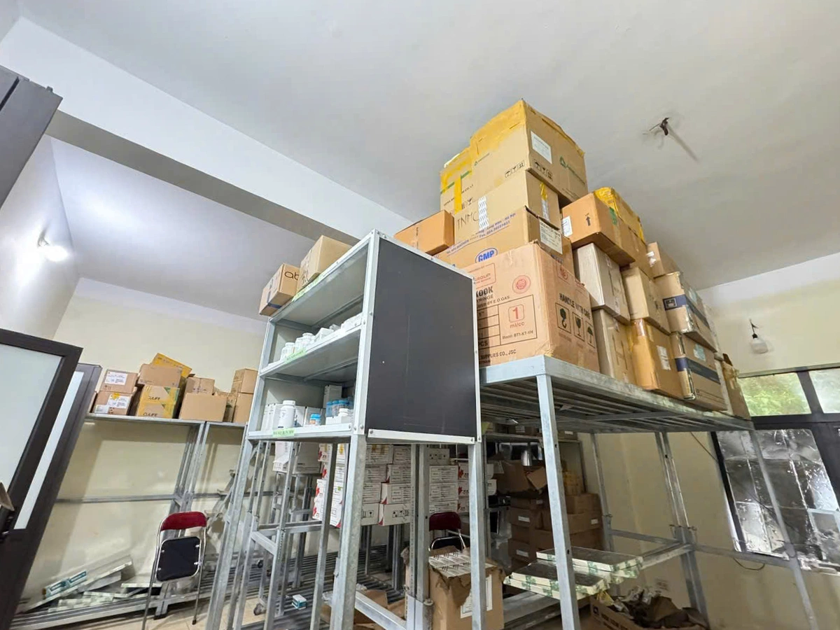 Kho thuốc của bệnh viện hiện đã được dọn dẹp sạch sẽ. Ngày 6/10, lũ quét ập vào cuốn trôi gần hết kho thuốc, các nhân viên y tế phải làm việc xuyên đêm, tát nước, đóng gói cứu các loại thuốc còn lại và đưa lên vị trí cao. Ngay hôm sau, bệnh viện nhập thêm thuốc mới để đảm bảo bệnh nhân duy trì điều trị không bị thiếu thuốc. Ảnh: Thanh Vân