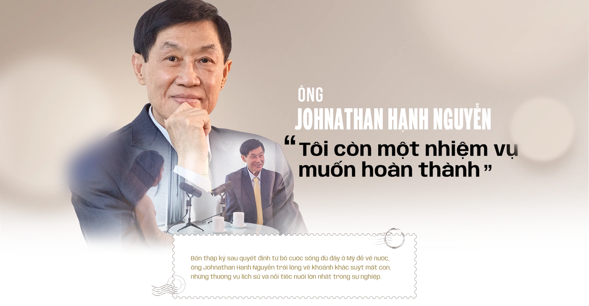 Nhân dịp 50 năm thống nhất đất nước, VnExpress thực hiện chuỗi phỏng vấn những trí thức, doanh nhân từng ra nước ngoài học tập, làm việc, đạt được thành công, sau đó trở về đóng góp cho đất nước. Ông Johnathan Hạnh Nguyễn là một trong những nhân vật như vậy. Trong cuộc trò chuyện này, ông chia sẻ về hành trình trở về, những bài học sau 40 năm kinh doanh, tâm tư về sự phát triển của đất nước, cũng như những kế hoạch lớn trong giai đoạn sắp tới.