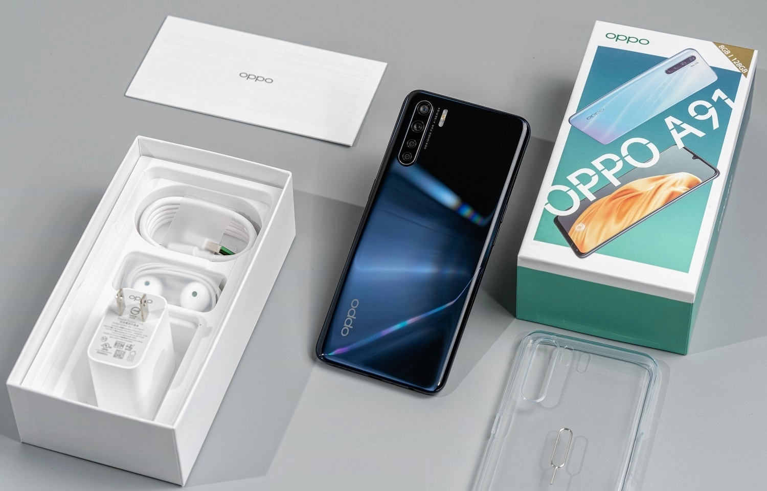 Thiết kế cũng là yếu tố được Oppo chú trọng trên sản phẩm dòng A mới khi độ mỏng chỉ còn 7,9mm, mỏng hơn 14% và nhẹ hơn 12% so với thế hệ tiền nhiệm. Bao phủ mặt trước của A91 là màn hình vô cực 6,4 inch dáng giọt nước, với tỷ lệ màn hình so với thân máy là 90,7%. Thiết bị dòng A mới còn được trang bị tấm nền AMOLED thay vì IPS như thông thường, nhờ đó cho màu sắc bắt mắt, tương phản tốt hơn. Độ phân giải Full HD+ giúp màn hình sắc nét, mang lại trải nghiệm xem phim, giải trí tốt.