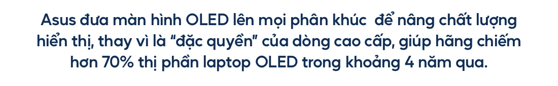 Asus đưa OLED thành trang bị mặc định trên Zenbook và Vivobook. Chiến lược này được ví giống như việc mang "màn chiếu rạp" thu nhỏ xuống phân khúc mà người dùng trước đây chỉ quen với LCD hay IPS. Chiến lược này đồng thời tạo "độ nới rộng" cho tổng thị trường laptop OLED.
