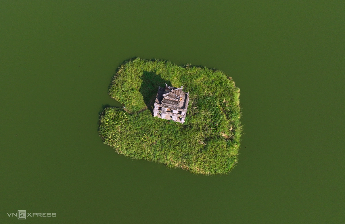 Tháp Rùa biểu tượng bình yên giữa Thủ đô in bóng giữa mặt nước xanh tĩnh lặng.