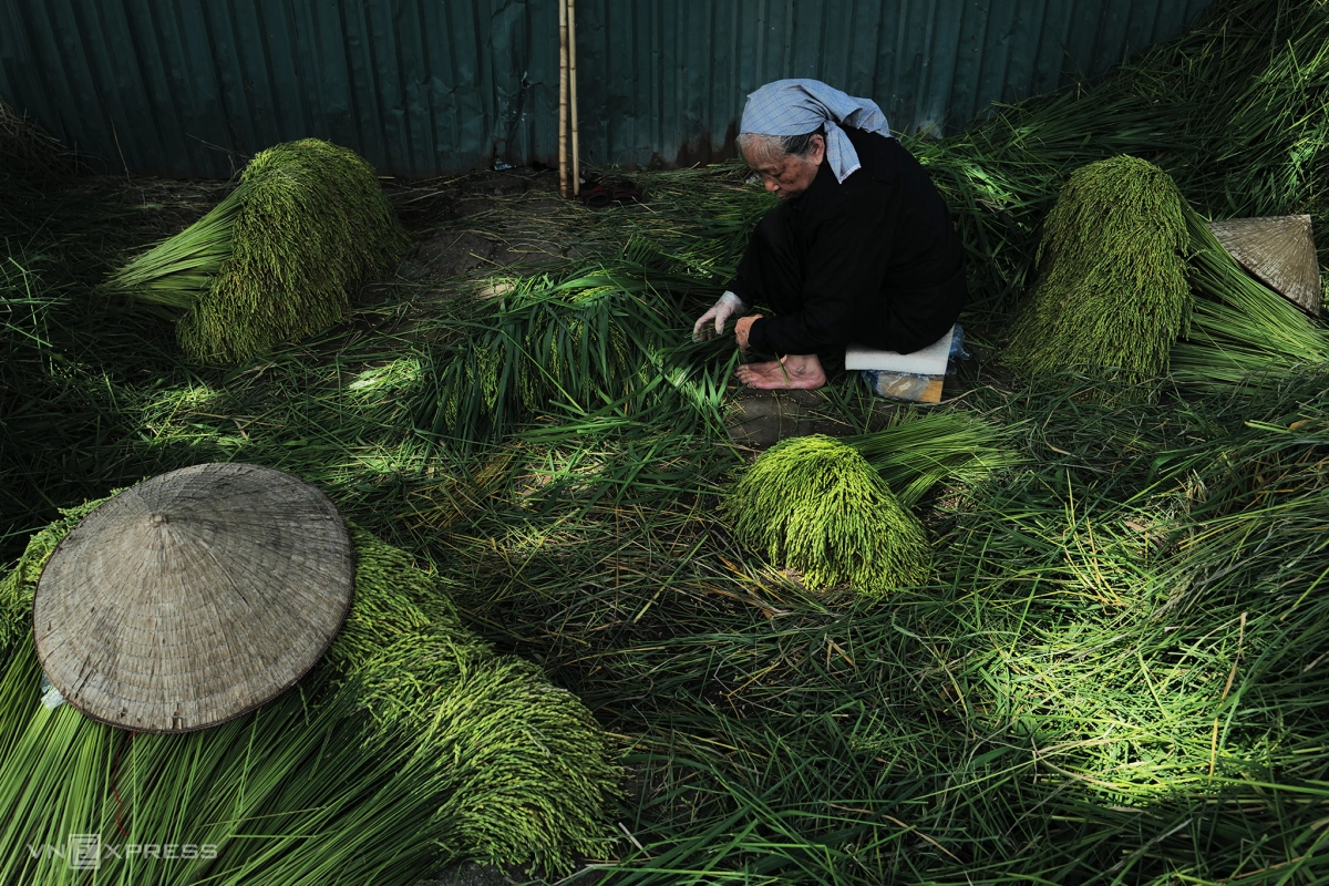Tại làng Mễ Trì, nơi nổi tiếng với nghề làm cốm, người dân bước vào đợt thu hoạch lúa nếp.