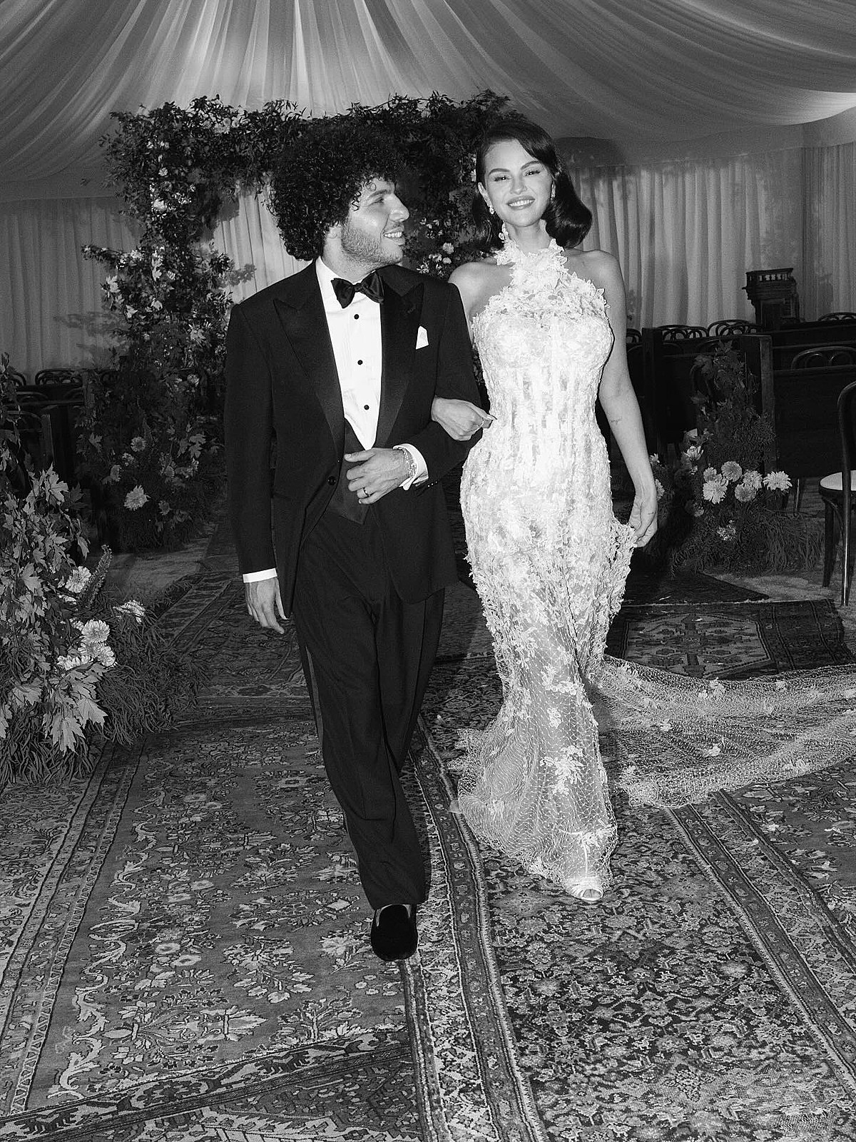 Phần lớn ảnh cưới đều theo tông trắng đen. Trước đó, cả hai giữ kín thông tin về địa điểm, thời gian tổ chức hôn lễ với truyền thông. Sự kiện được tổ chức bên trong một căn lều trắng lớn, trang trí bằng nhiều hoa thược dược. Vợ chồng Selena - Benny được cho chi khoảng 300.000 USD cho vấn đề an ninh.