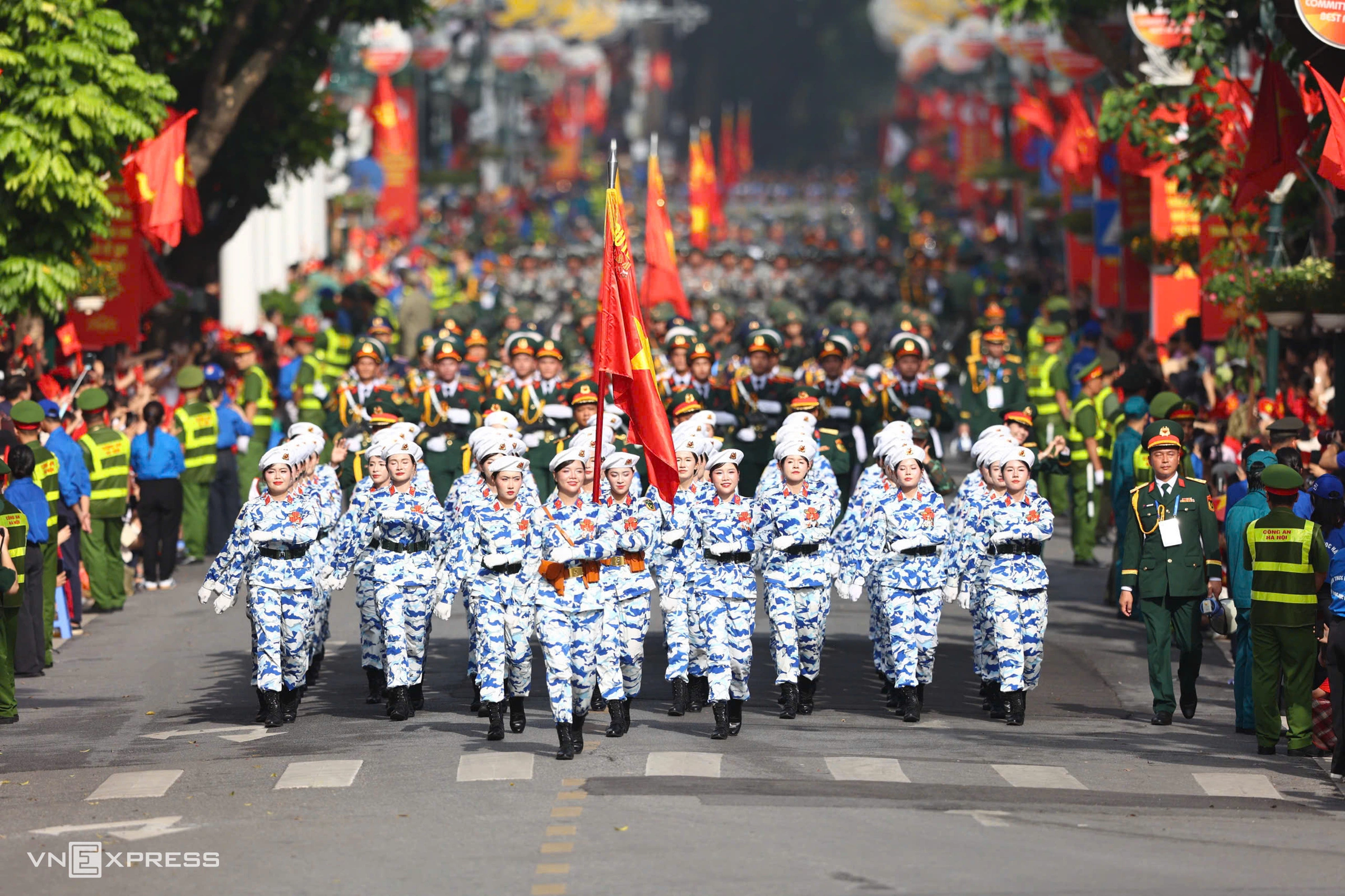 Lễ diễu binh, diễu hành mừng Quốc khánh lần thứ 80 diễn ra trong tiết trời thu dịu mát. Từ đêm trước, người dân đã phủ kín hè phố quanh quảng trường Ba Đình, dọc hành trình đoàn diễu binh đi qua. Tất cả chờ đợi màn trình diễn của lực lượng Hải, Lục, Không quân cùng khối xe pháo, khí tài.