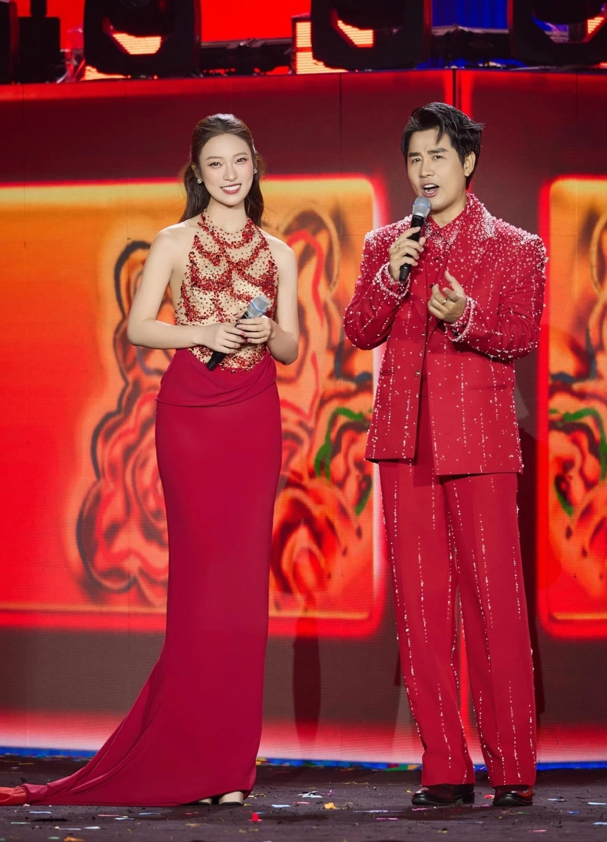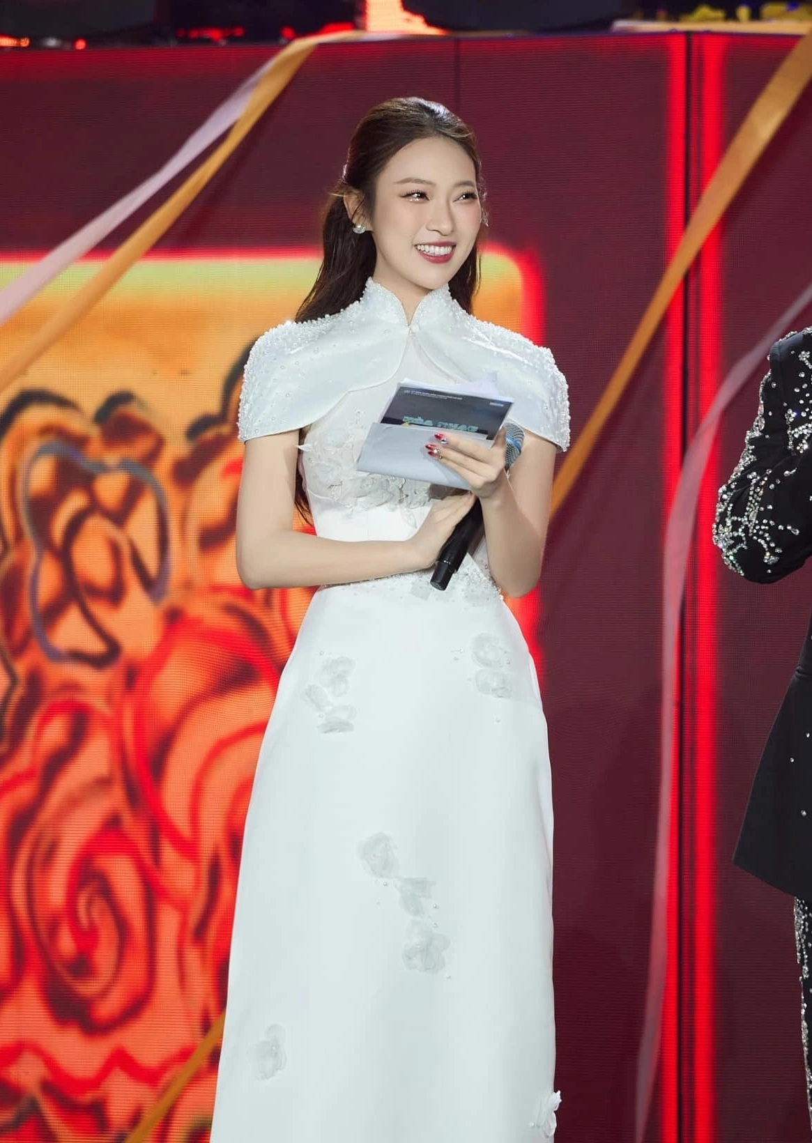 Cũng trong chương trình này, cô thay áo dài cách tân, mang cấu trúc của đầm Tây.