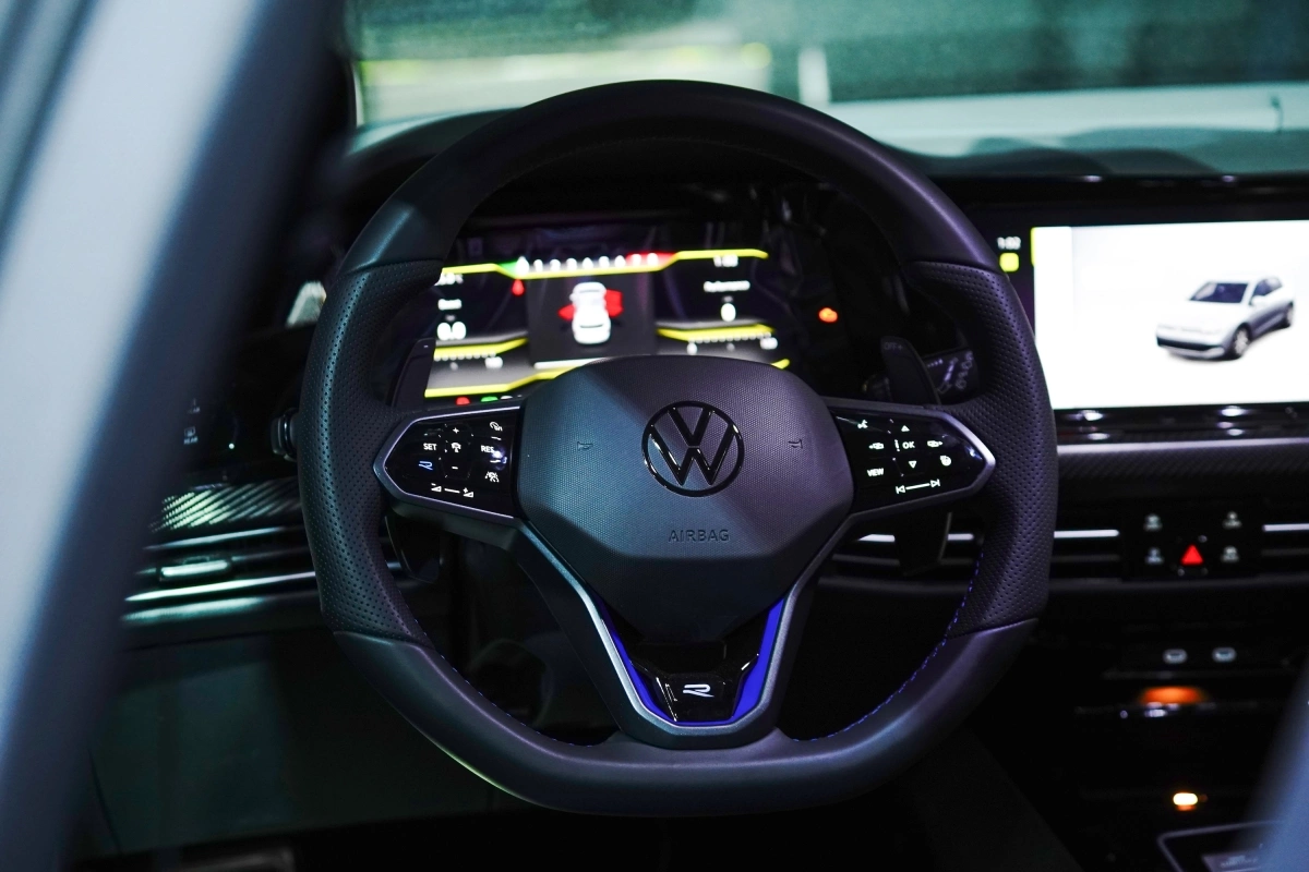 Điểm nhấn trên Golf R là các công nghệ hỗ trợ, trang bị thể thao ở nội, ngoại thất nhằm tối đa hóa trải nghiệm sau tay lái. Xe sở hữu các trang bị tiêu chuẩn như đèn pha LED ma trận, dải định vị vắt ngang.