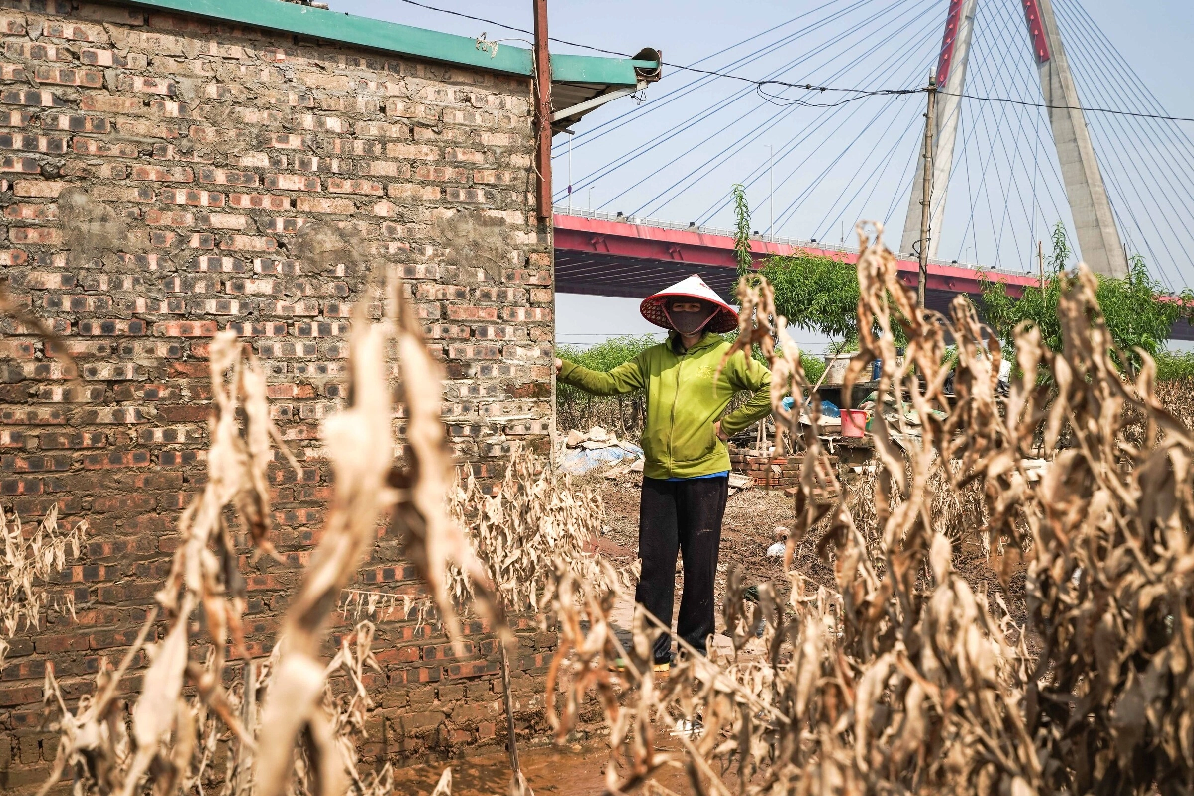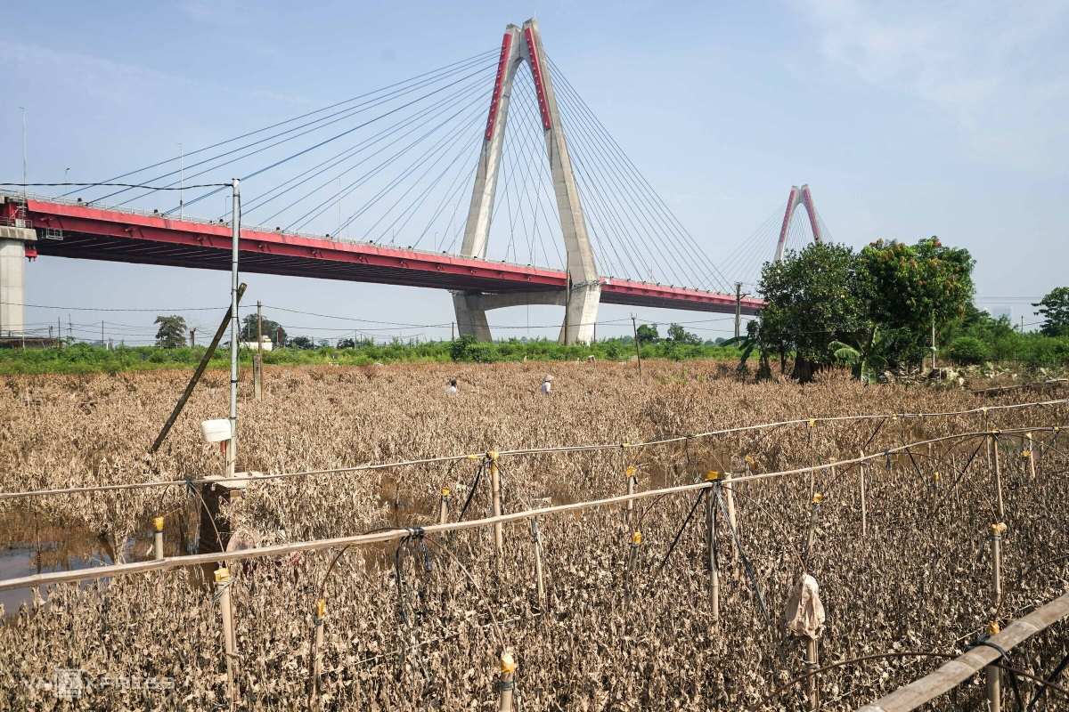 Cách Tây Tựu hơn 10 km, xã Mê Linh từ lâu được biết đến là vùng trồng rau củ nổi tiếng của Hà Nội, với phần lớn diện tích là bãi bồi ven sông chuyên canh nông sản. Sau một tuần ngập nước, nhiều khu bãi vẫn bị chia cắt, người dân phải dùng thuyền ra thăm đồng do nước chưa rút hết.